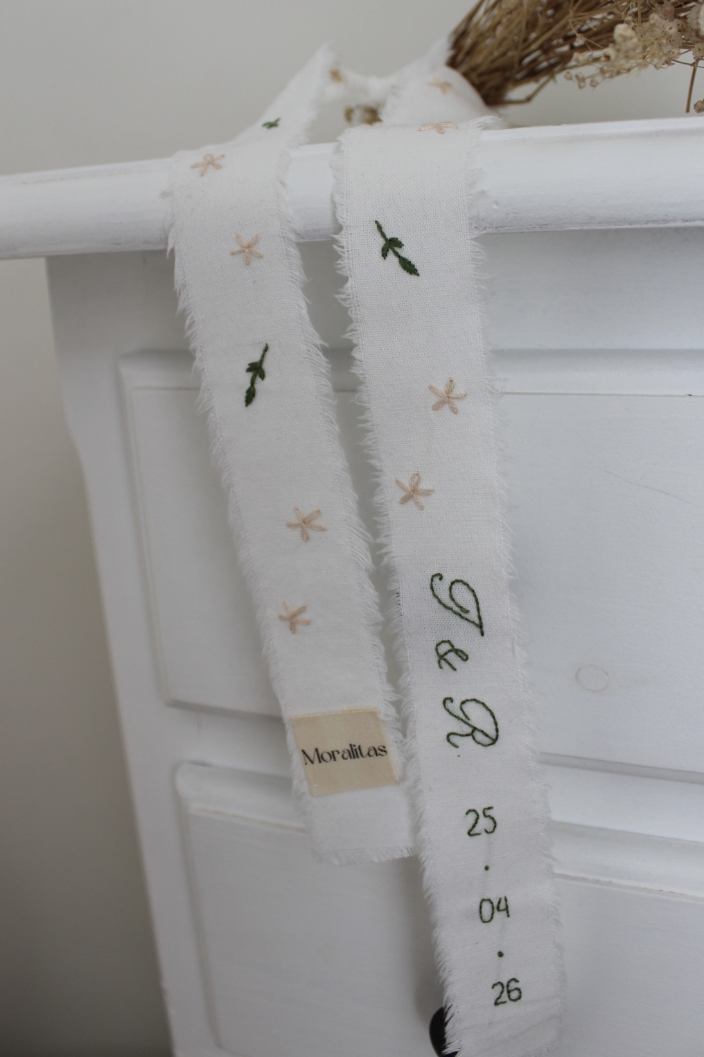 Cinta para ramo bordada a mano. Perfecta para dar un toque personal a tu ramo.