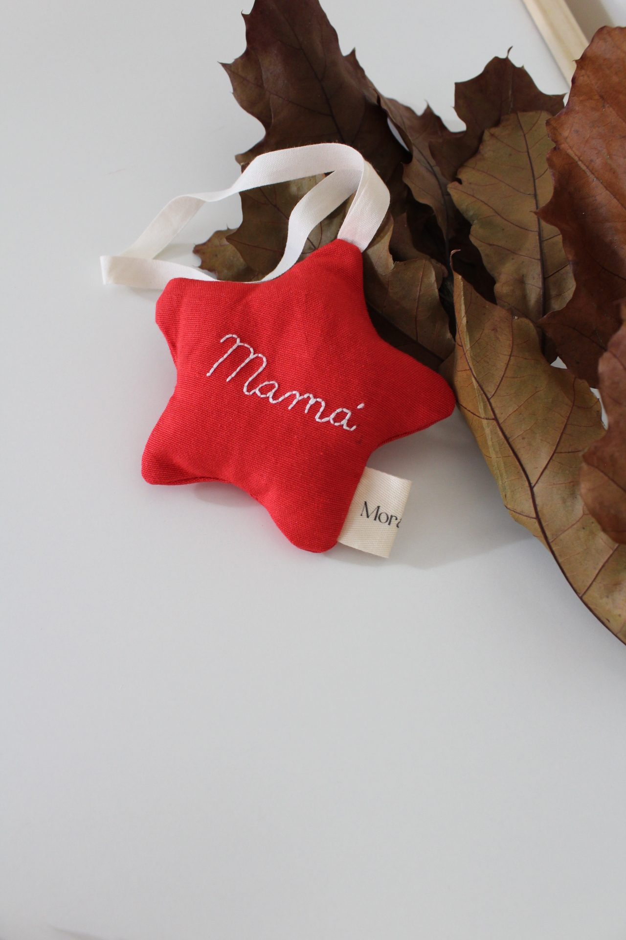 Adorno para colgar en forma de estrella con posibilidad de bordado.