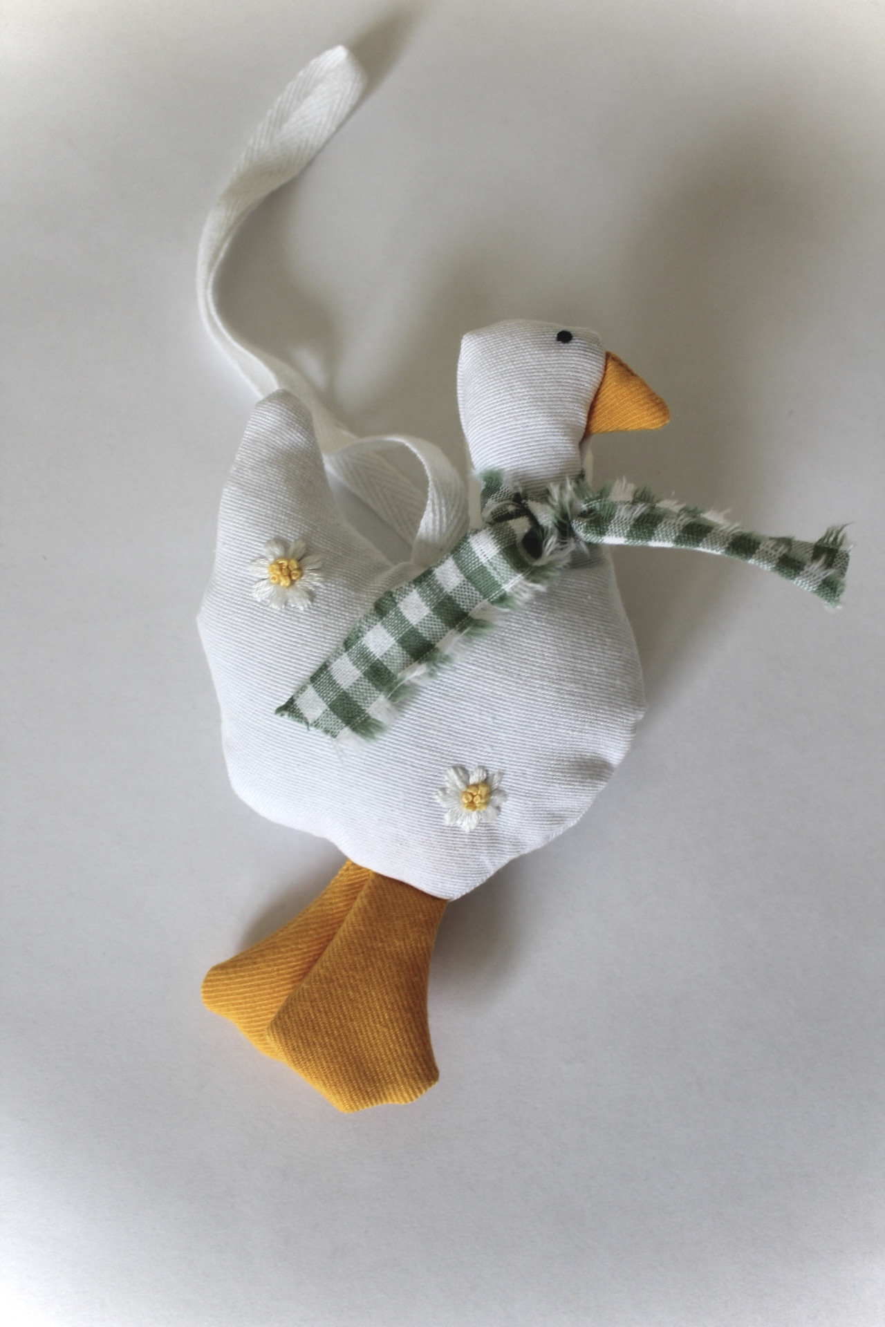 Patito de tela y bordado a mano con posibilidad de personalización en la parte posterior.